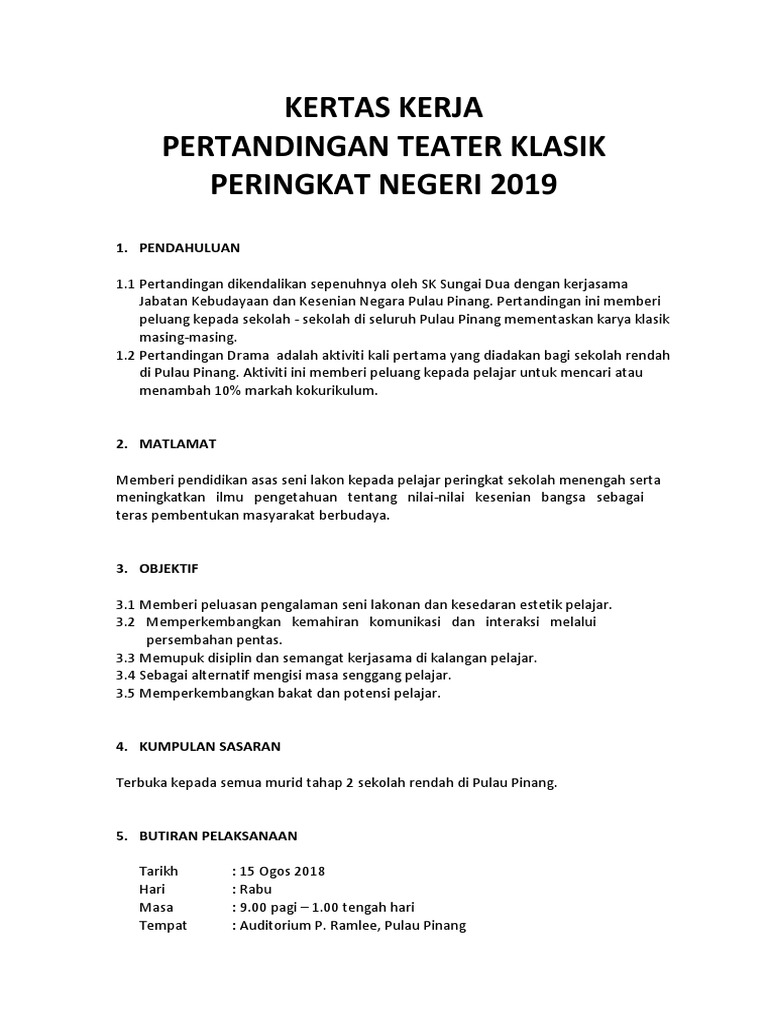 Kertas Kerja Pertandingan Teater Peringkat Negeri Pdf